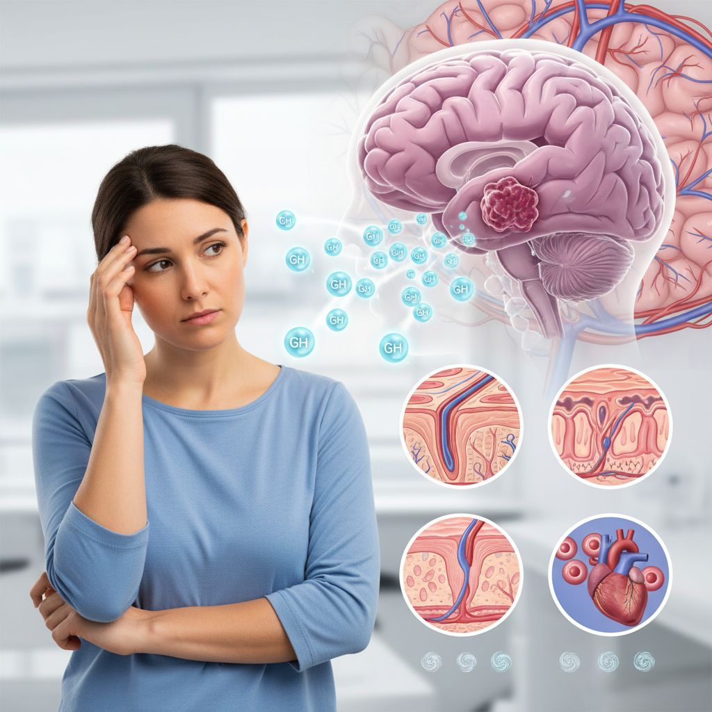 O adenoma somatotrófico é um tumor benigno na glândula pituitária que leva à produção excessiva do hormônio do crescimento (GH), resultando em gigantismo em crianças e acromegalia em adultos, condições caracterizadas por crescimento anormal de tecidos e ossos. Além das alterações físicas, como aumento das mãos, pés e características faciais, o adenoma somatotrófico pode causar diabetes, doenças cardíacas, hipertensão e compressão de nervos, impactando significativamente a qualidade de vida e a saúde geral do indivíduo.