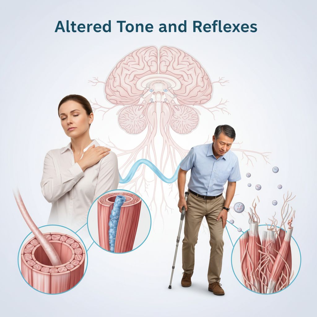 Alterações de tônus e reflexo referem-se a condições como espasticidade, onde os músculos ficam excessivamente tensos, ou hipotonia, caracterizada pela flacidez muscular, ambas resultantes de problemas neurológicos. Essas condições afetam a capacidade de controlar os movimentos e podem ter um impacto significativo na saúde geral e na qualidade de vida.