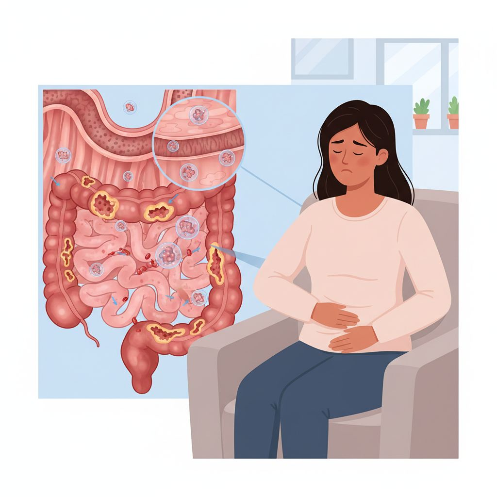 A amebíase, popularmente conhecida como disenteria amebiana, é uma infecção intestinal causada por um parasita transmitido através da ingestão de água ou alimentos contaminados. Os sintomas mais frequentes incluem diarreia, dores abdominais e febre, podendo, em casos mais graves, causar abcessos no fígado e outras complicações sérias.