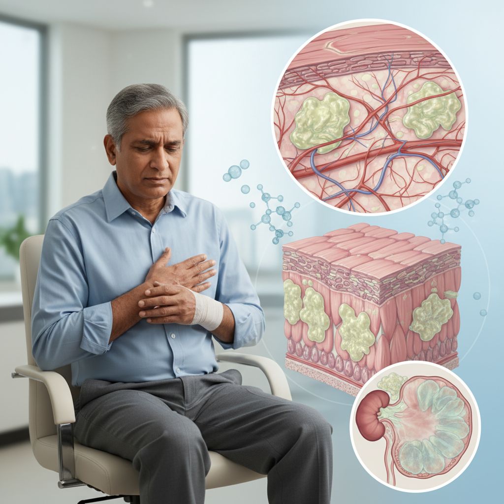 A amiloidose hereditária, uma forma de amiloidose familiar, resulta do acúmulo de proteínas amiloides anormais hereditárias em órgãos e tecidos, afetando principalmente os nervos, coração e rins. Os sintomas mais frequentes incluem neuropatia periférica, insuficiência cardíaca e disfunção renal, com impactos significativos na saúde e qualidade de vida dos indivíduos afetados.