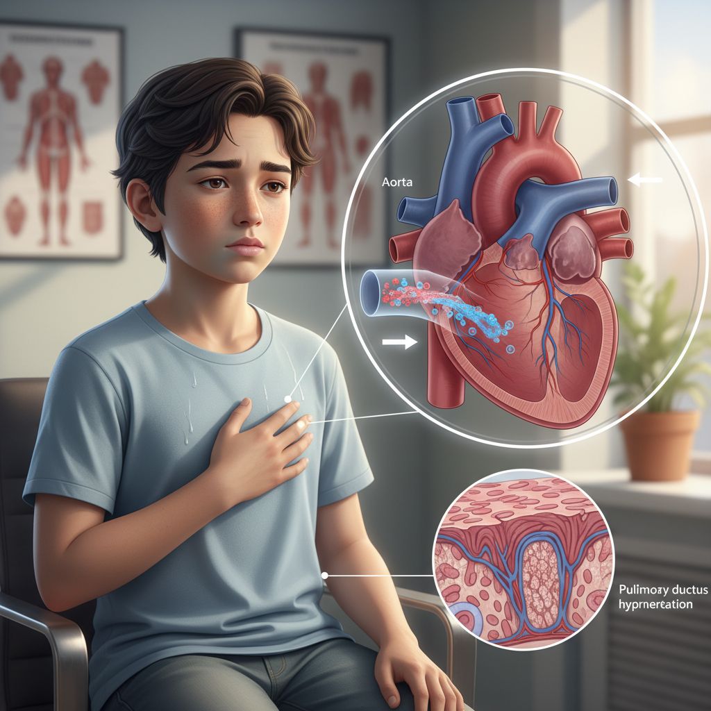 A anomalia congênita das grandes artérias, que inclui condições como transposição das grandes artérias (TGA) e persistência do canal arterial (PCA), são malformações cardíacas presentes ao nascimento que alteram o fluxo sanguíneo normal entre o coração e os pulmões. Essas condições podem causar sintomas como dificuldade para respirar, cianose (coloração azulada da pele) e cansaço, e podem levar a complicações sérias como insuficiência cardíaca e hipertensão pulmonar se não forem corrigidas.