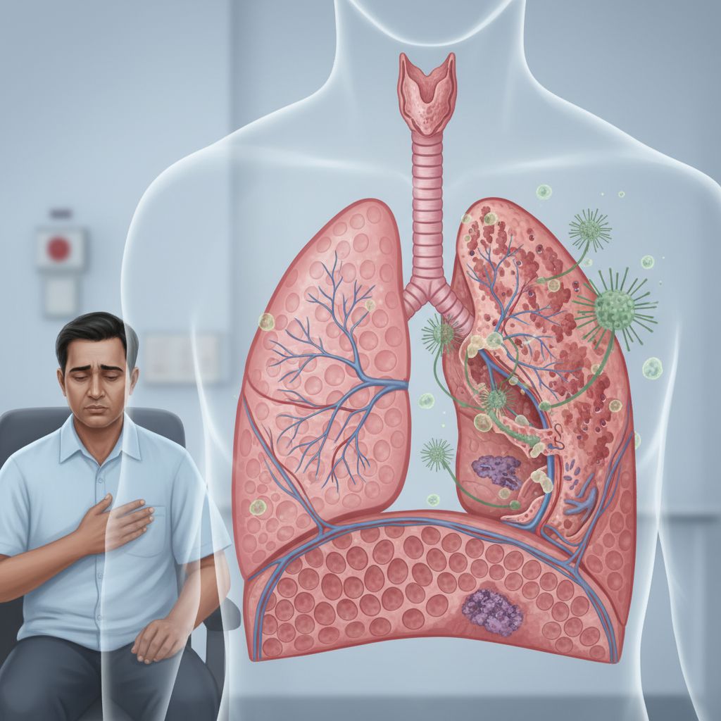 A aspergilose invasiva é uma infecção fúngica grave causada pelo fungo Aspergillus, que afeta principalmente pessoas com sistemas imunológicos comprometidos, como pacientes em tratamento de câncer ou transplantados. Os sintomas incluem febre, tosse, dor no peito e dificuldade para respirar, podendo levar a danos nos órgãos e risco de vida se não tratada adequadamente.
