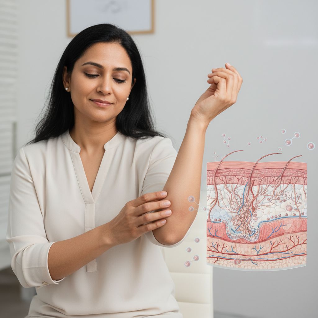 A atrofia ou degeneração do tecido conjuntivo dérmico ou subcutâneo, quando não especificada, refere-se à deterioração das camadas de suporte da pele, resultando em mudanças visíveis e palpáveis na sua estrutura. Os sintomas podem variar desde pequenas áreas deprimidas até alterações mais extensas, com impacto na aparência e, potencialmente, na integridade da pele.