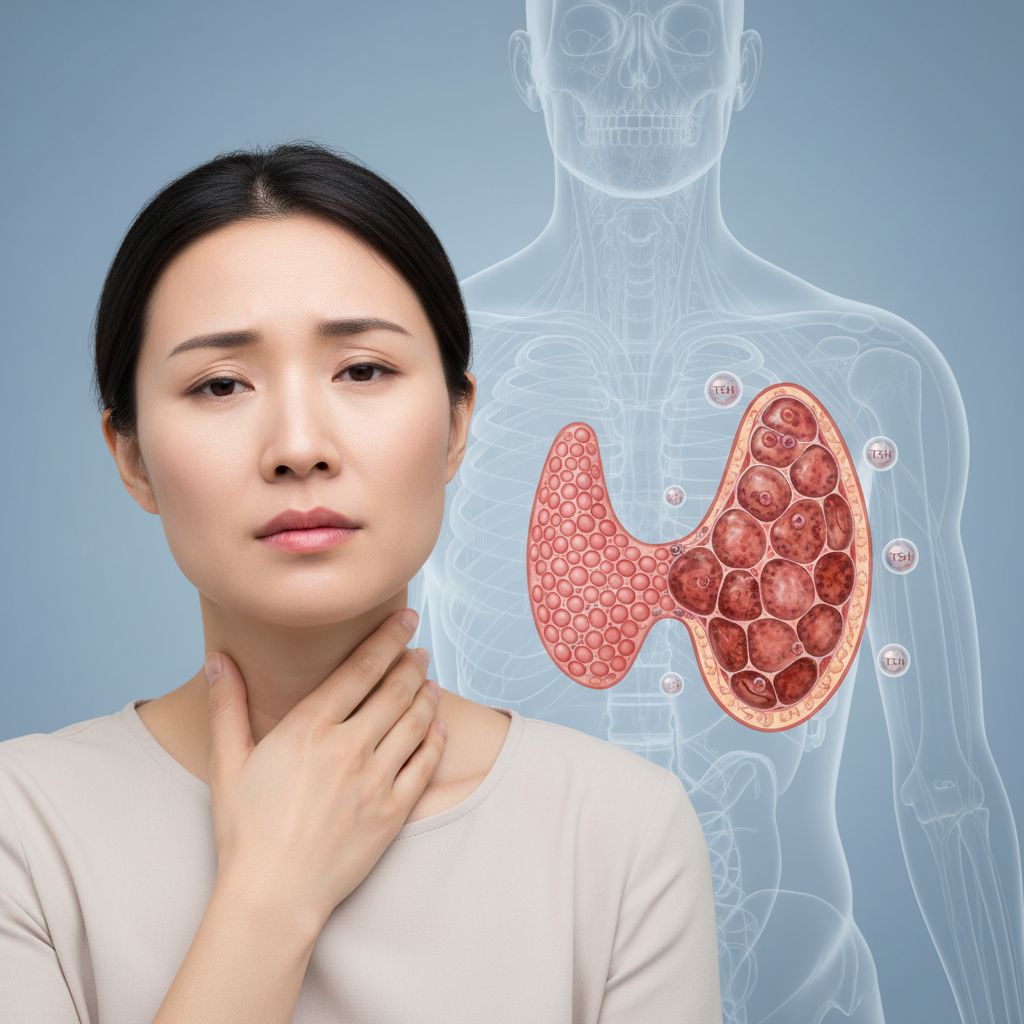 O bócio difuso relacionado à deficiência de iodo, popularmente chamado de "papo", ocorre quando a glândula tireoide aumenta de tamanho em resposta à falta de iodo na alimentação, manifestando-se como um inchaço visível no pescoço. A longo prazo, essa condição pode causar hipotireoidismo, afetando o metabolismo, o crescimento e o desenvolvimento neurológico, especialmente em crianças e gestantes.