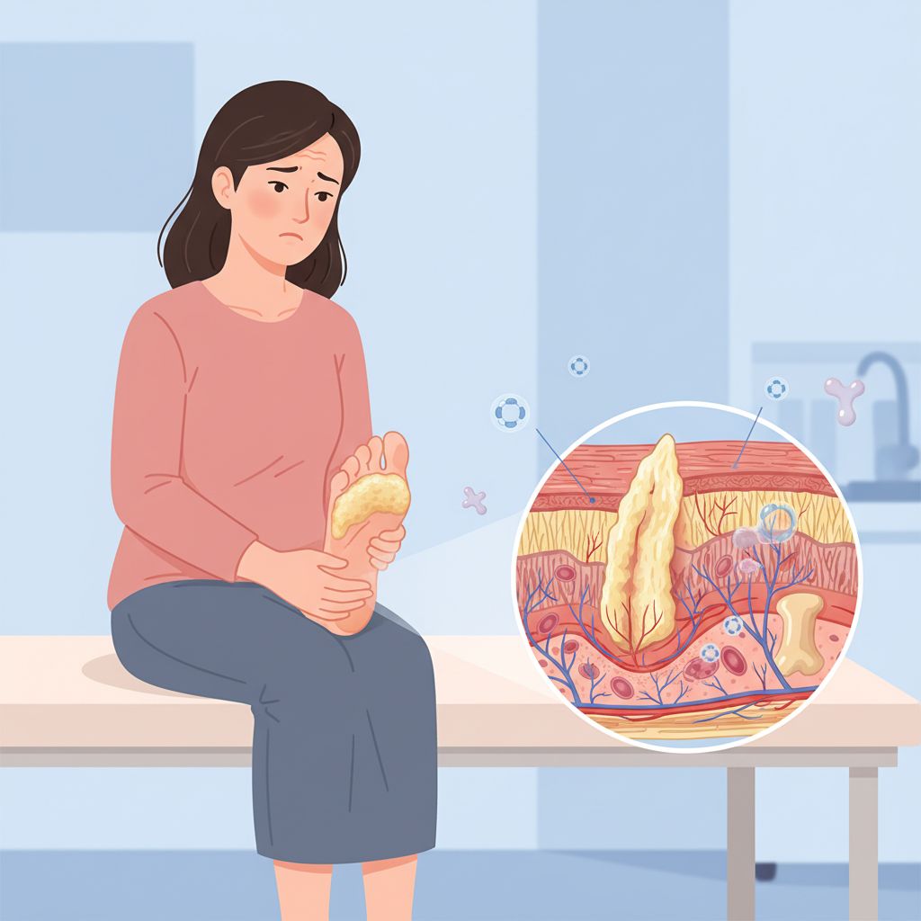 O calo duro, ou heloma, é um espessamento da pele causado por pressão constante, frequentemente nos pés, resultando em dor e incômodo ao caminhar. Essa condição pode limitar atividades diárias e causar desconforto significativo se não for tratada.