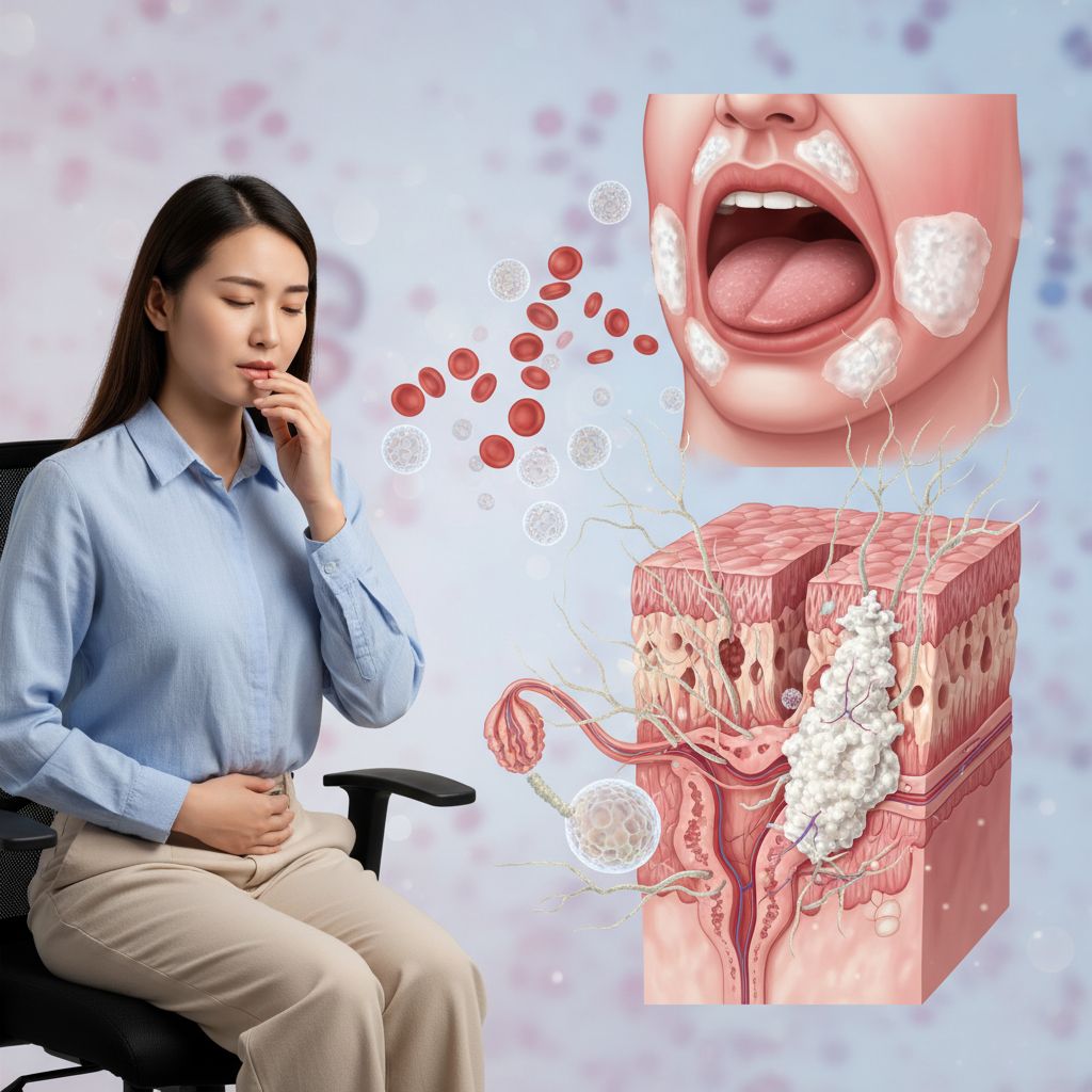 Candidíase é uma infecção fúngica comum, frequentemente causada pela Candida albicans, que pode afetar diversas áreas do corpo, como a boca, a vagina ou a pele, manifestando-se por sintomas como coceira intensa, irritação e corrimento anormal. Se não tratada, a candidíase pode levar a desconforto crônico, disseminação da infecção e, em casos raros, complicações sistêmicas, especialmente em pessoas com sistema imunológico enfraquecido.