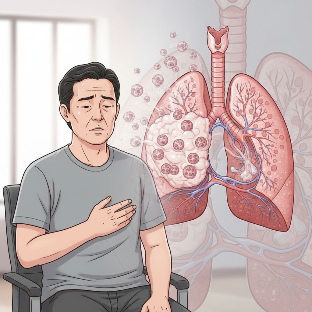 O carcinoma de células grandes de brônquio ou pulmão é um tipo agressivo de câncer de pulmão, sem nomes populares conhecidos, cujos sintomas comuns são tosse crônica, falta de ar e dor torácica. Este câncer pode levar a complicações graves como metástase para outros órgãos, insuficiência respiratória e redução drástica na qualidade de vida do paciente.