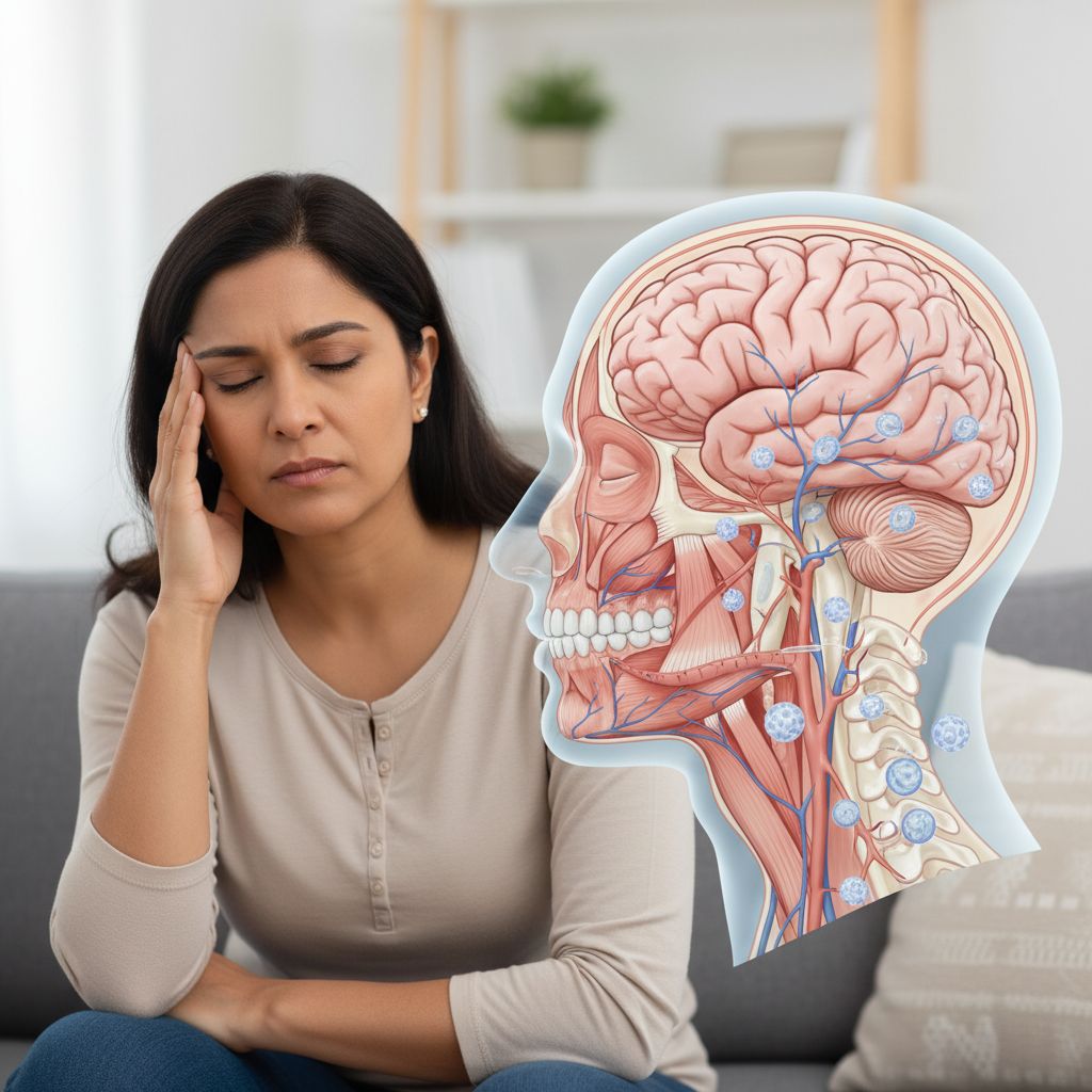 A cefaleia secundária ou dor orofacial crônica, não especificada, abrange dores de cabeça e/ou faciais prolongadas que resultam de outras doenças ou distúrbios, como problemas na mandíbula, infecções ou lesões. Os sintomas podem variar amplamente, incluindo dor latejante, rigidez muscular, sensibilidade ao toque e dificuldade para abrir a boca, afetando a capacidade de realizar atividades diárias e bem-estar geral.