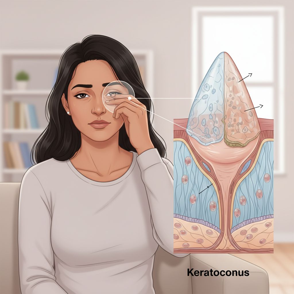 Ceratocone, popularmente conhecido como córnea cônica, é uma doença ocular degenerativa que afeta a córnea, causando sua deformação gradual e progressiva. Essa condição leva a sintomas como visão turva, halos ao redor das luzes e aumento da sensibilidade à luz, impactando a capacidade visual e a qualidade de vida.