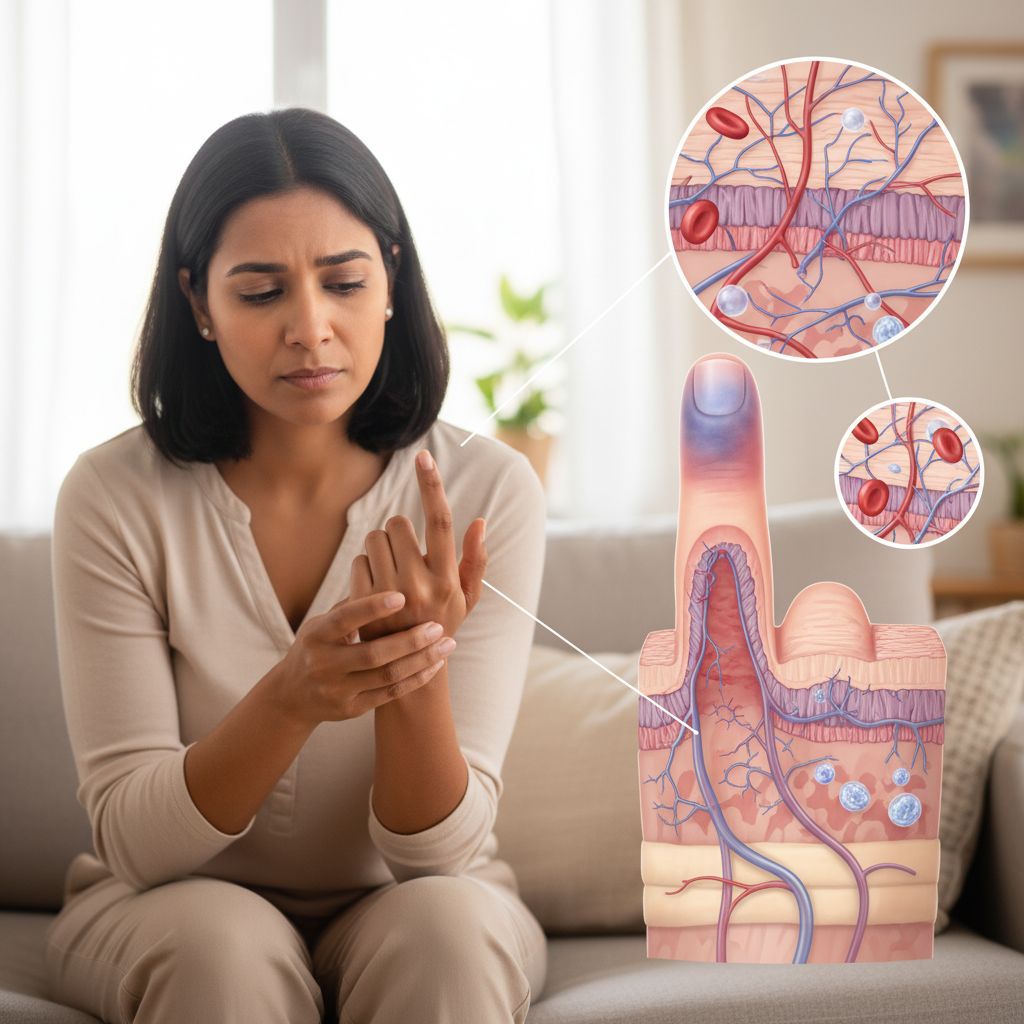 A contusão de dedo da mão ou polegar, também chamada de dedo machucado ou dedo roxo, é uma lesão comum causada por pancadas ou esmagamentos, resultando em dor imediata, inchaço e a formação de um hematoma visível sob a pele. Embora raramente represente um risco grave para a saúde, a contusão pode causar desconforto significativo e temporária limitação da função da mão.