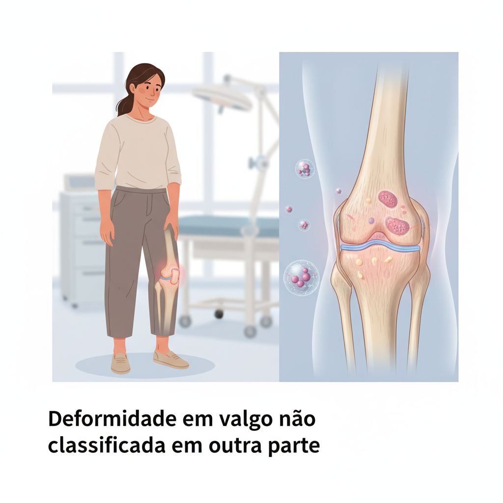A deformidade em valgo não classificada em outra parte engloba desalinhamentos dos membros inferiores que não possuem uma causa ou classificação bem definida, manifestando-se por desvios como joelhos valgos ou pés planos valgos; essa condição pode levar a dores nas articulações, desequilíbrio muscular e alterações na marcha, impactando a capacidade de realizar atividades diárias.