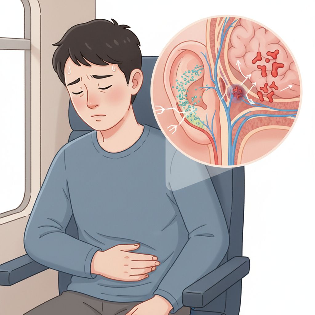 A doença causada pelo movimento, popularmente chamada de enjoo de viagem ou cinetose, é caracterizada por sintomas como náuseas, vômitos e vertigens, que surgem devido à discordância entre o que os olhos veem e o que o sistema vestibular do ouvido interno sente. Essa condição pode causar desconforto significativo e limitar a participação em viagens e outras atividades.