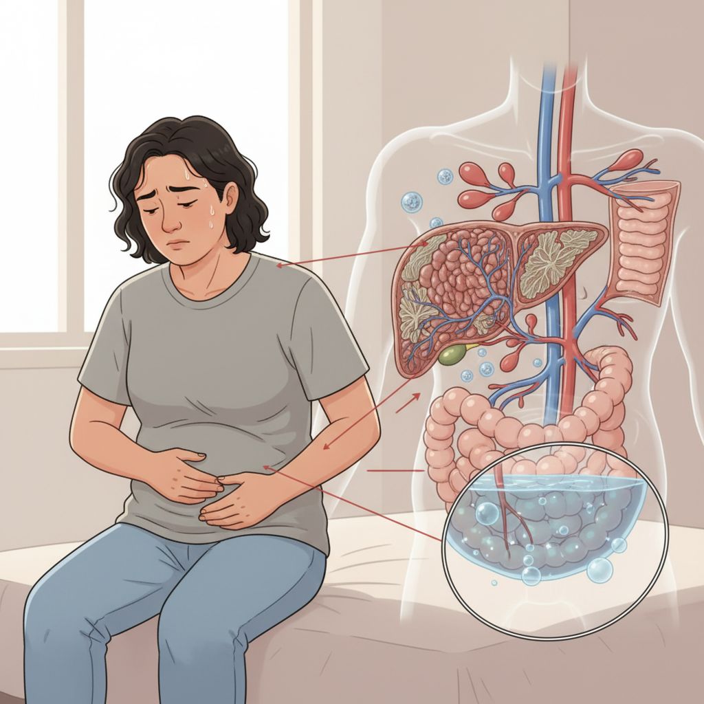 A hipertensão portal, popularmente conhecida como pressão alta no fígado, é o aumento da pressão na veia porta, que transporta sangue do intestino para o fígado. Os sintomas mais comuns incluem inchaço abdominal (ascite), varizes no esôfago e sangramentos, podendo levar a problemas sérios como insuficiência hepática e encefalopatia, que afetam a função cerebral.