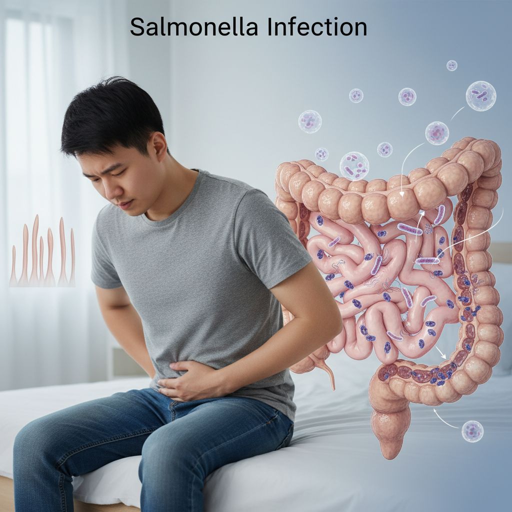 A Infecção por Salmonella, ou salmonelose, é uma doença causada por bactérias do gênero Salmonella, manifestando-se com sintomas como diarreia, febre e cólicas abdominais. A prevenção é feita através de práticas de higiene alimentar e o tratamento envolve hidratação e, em casos graves, antibióticos.
