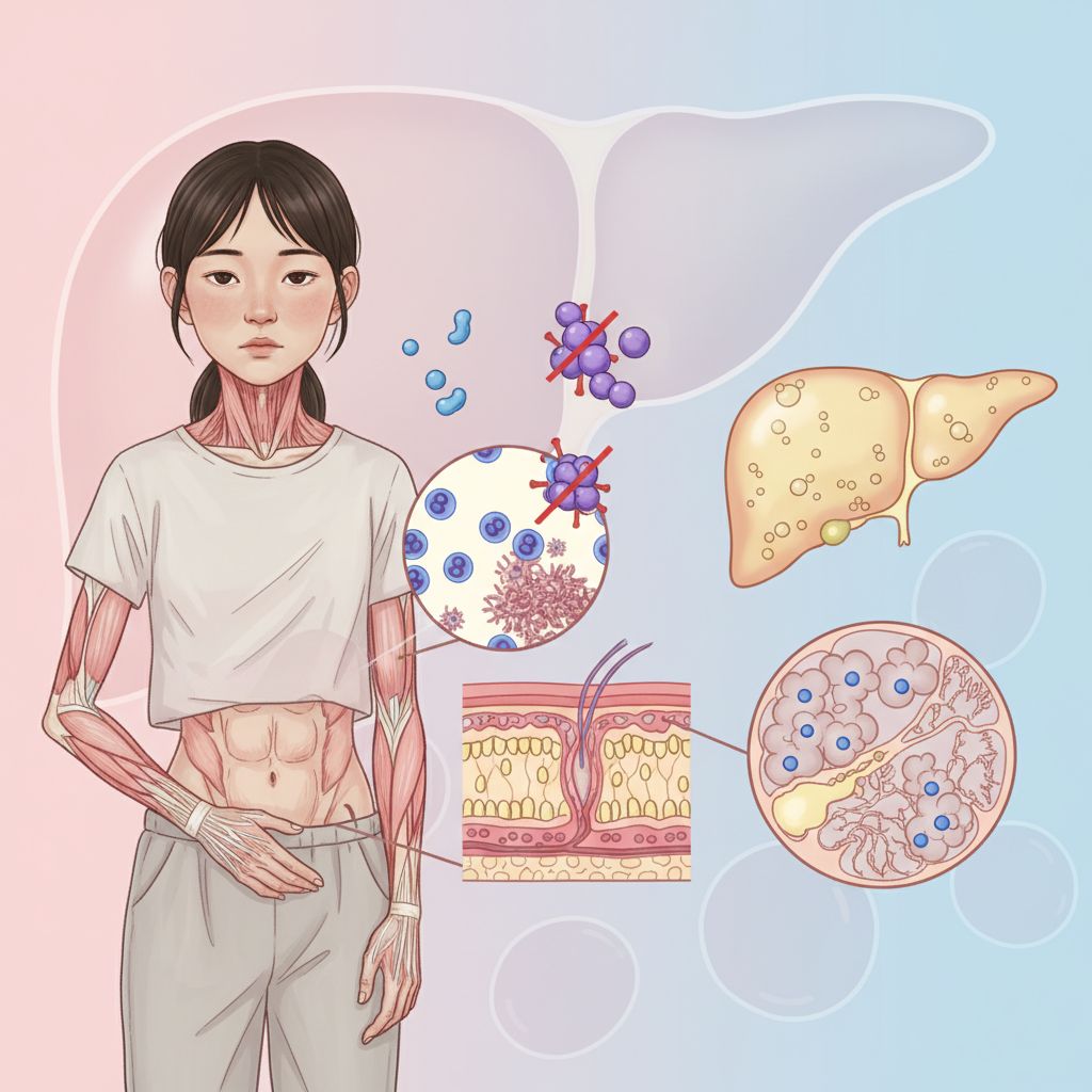 A lipodistrofia generalizada congênita (síndrome de Berardinelli-Seip) é uma condição genética rara que causa a perda de tecido adiposo desde o nascimento ou infância, resultando em problemas metabólicos graves. Essa falta de gordura leva a resistência à insulina, diabetes, aumento dos triglicerídeos e pode afetar o fígado e outros órgãos.
