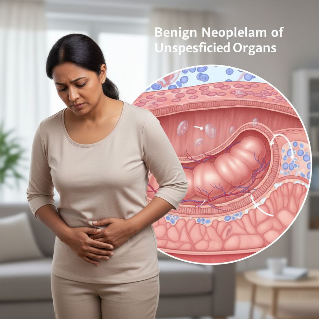 A neoplasia benigna de órgãos digestivos não especificados refere-se ao crescimento anormal de células não cancerosas em órgãos como estômago, intestino ou esôfago, podendo ser chamada popularmente de pólipo ou tumor benigno. Embora geralmente assintomática, pode causar desconforto abdominal, sangramento ou obstrução, sendo importante o acompanhamento médico para monitorar seu crescimento e evitar complicações.