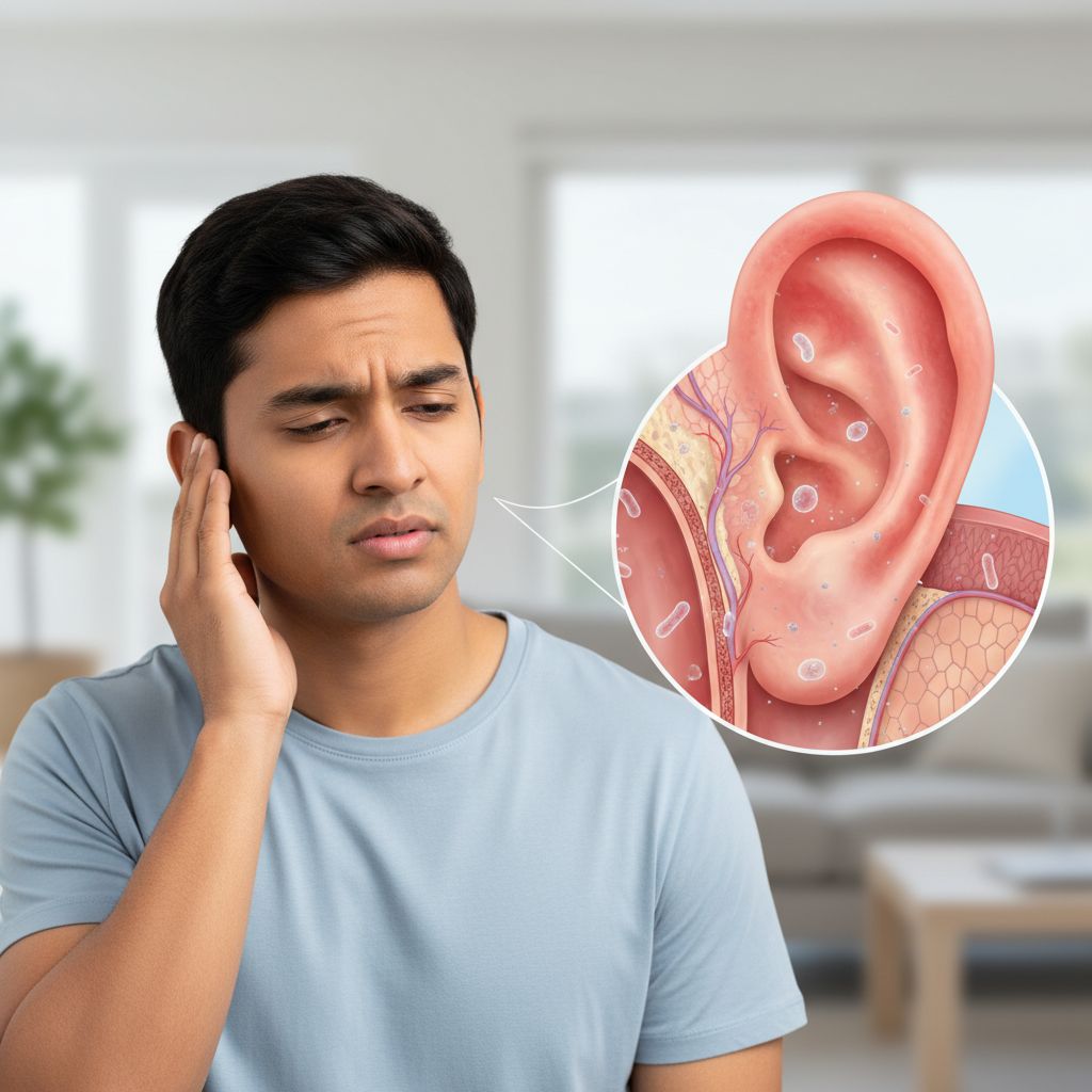 A otite externa, popularmente chamada de "ouvido de nadador", é uma inflamação do canal auditivo externo que pode ser desencadeada por umidade, lesões ou infecções bacterianas e fúngicas. Os sintomas incluem dor, coceira intensa e secreção, impactando a qualidade de vida e, se não tratada, levando a complicações como infecções recorrentes ou problemas de audição.