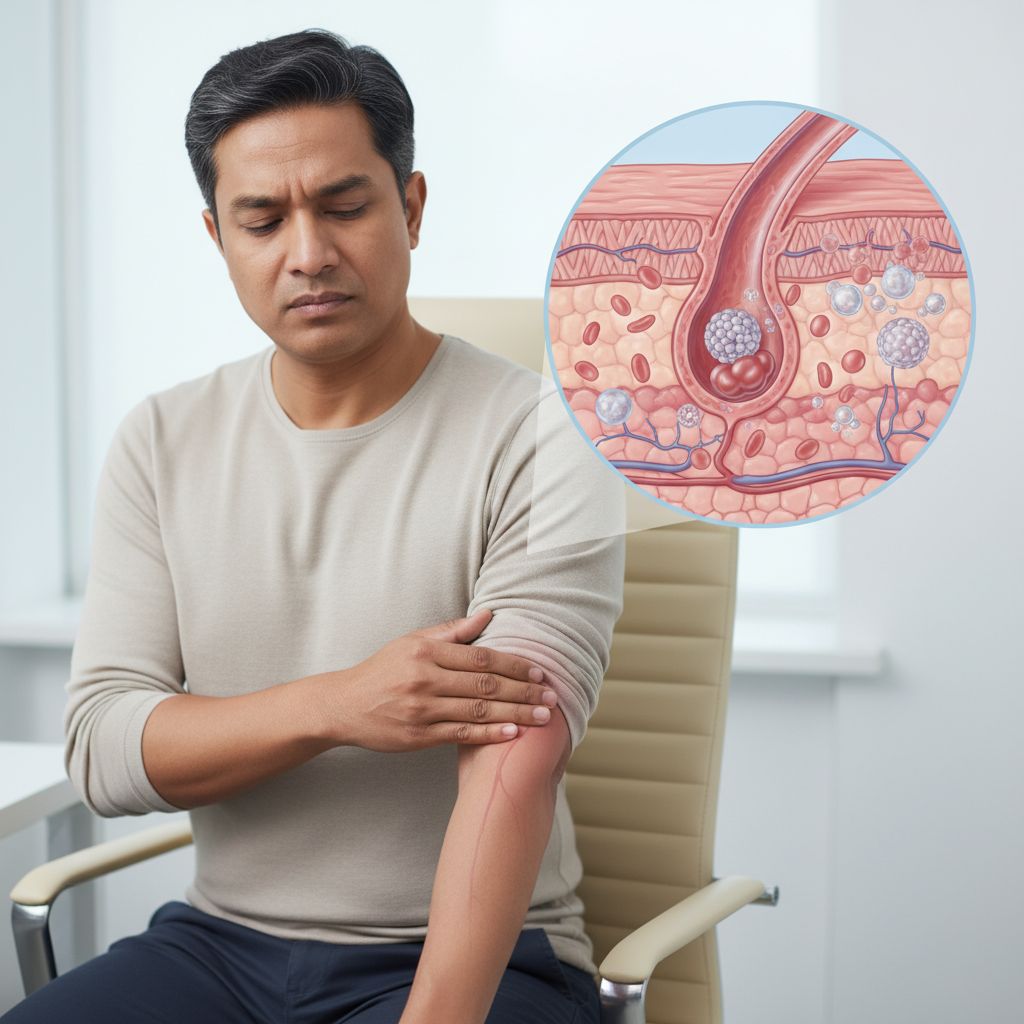 A outra tromboflebite superficial especificada manifesta-se como uma inflamação dolorosa em veias superficiais, distinta da tromboflebite comum nas pernas, com sintomas como vermelhidão e inchaço na área afetada. Embora geralmente não represente um risco grave, a condição exige avaliação médica para descartar outras complicações e receber tratamento adequado.