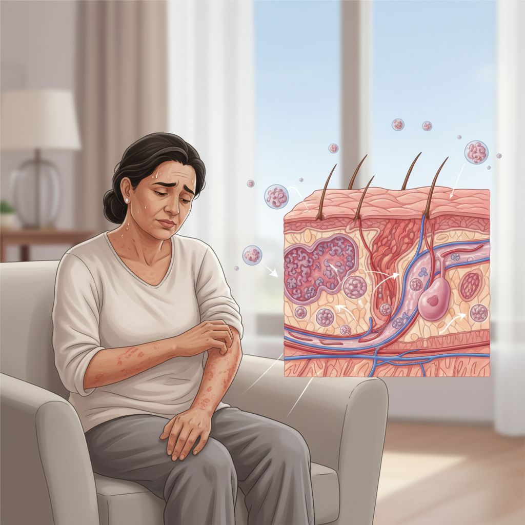 A Síndrome de Sézary é um linfoma cutâneo raro que afeta células T, manifestando-se com vermelhidão generalizada na pele, coceira intensa e presença de células anormais no sangue. Essa condição pode levar a complicações no sistema imunológico e afetar a qualidade de vida do paciente.