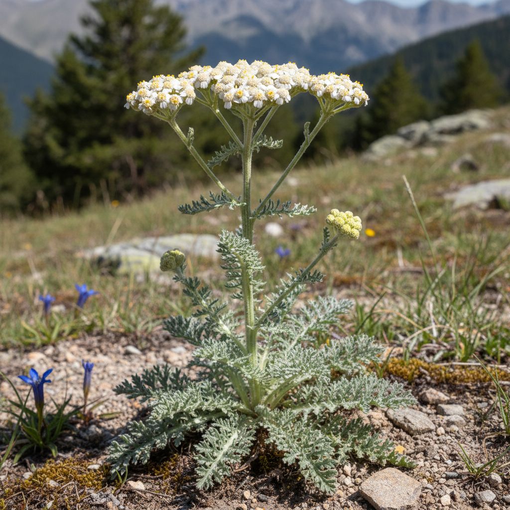 Achillea multifida, também conhecida como mil-folhas, possui propriedades medicinais comprovadas, sendo tradicionalmente usada para tratar problemas digestivos, como dispepsia e cólicas, além de possuir ação anti-inflamatória e cicatrizante, sendo eficaz no tratamento de feridas e queimaduras, aliviando dores e promovendo a regeneração tecidual, graças a presença de compostos bioativos como flavonoides, taninos e óleos essenciais. Estudos científicos demonstram sua eficácia, consolidando seu uso em fitoterapia e medicina popular ao redor do mundo, com grande segurança para consumo desde que aplicada em doses adequadas.