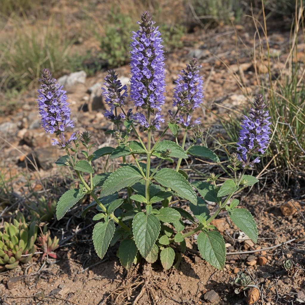 Agastache palmeri var. palmeri, também conhecido como anis mexicano, apresenta propriedades medicinais tradicionais, sendo utilizado para aliviar problemas digestivos, como indigestão e cólicas, além de possuir propriedades calmantes e relaxantes, sendo usado para combater ansiedade e insônia, contribuindo para um melhor descanso e bem-estar geral. Suas folhas e flores, ricas em óleos essenciais, são utilizadas em infusões e chás, que promovem efeitos benéficos para a saúde, principalmente pelo seu agradável aroma e sabor, estimulando o apetite e digestivo.