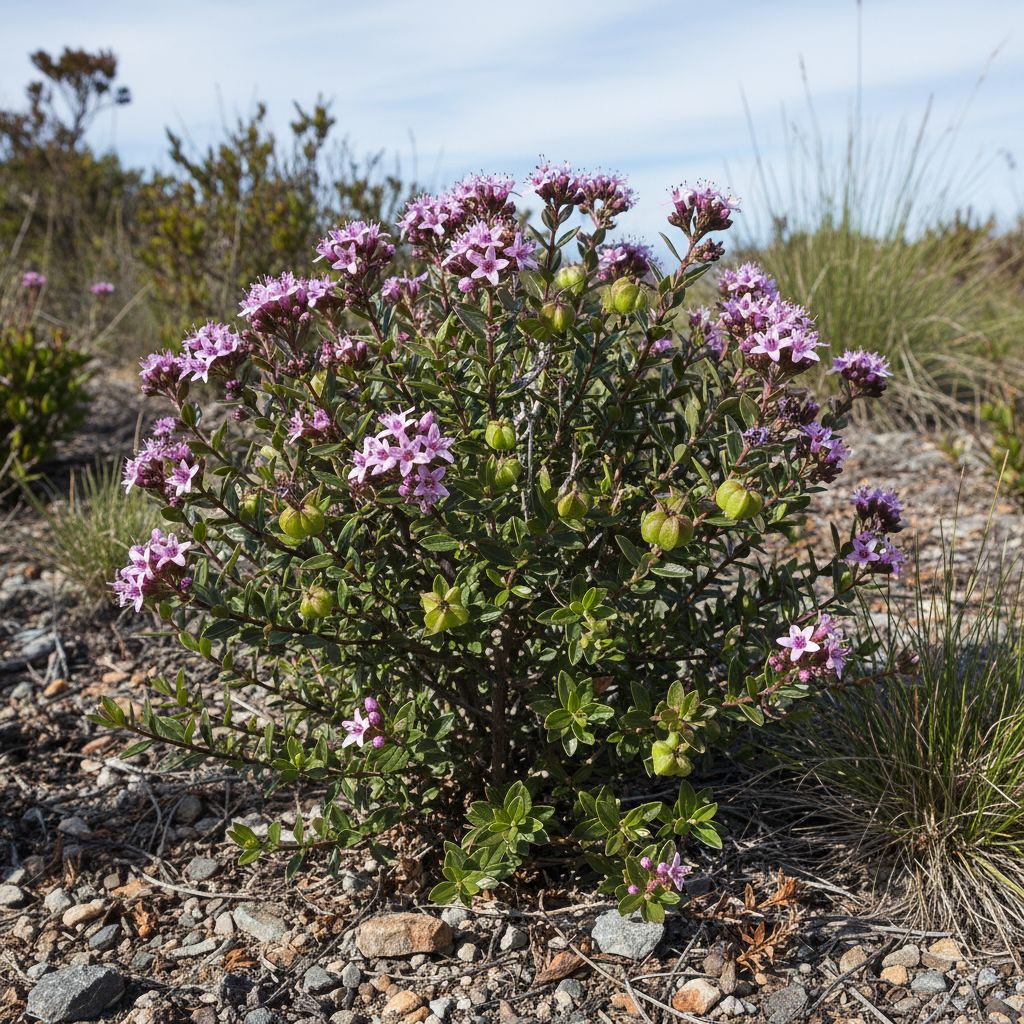 Agathosma purpurea, também conhecida como buchu, possui propriedades medicinais comprovadas, sendo tradicionalmente usada para tratar infecções do trato urinário, graças às suas ações antissépticas e diuréticas que promovem a eliminação de toxinas e combatem bactérias; além disso, apresenta propriedades antioxidantes, anti-inflamatórias e expectorantes, contribuindo para a saúde respiratória e imunológica.