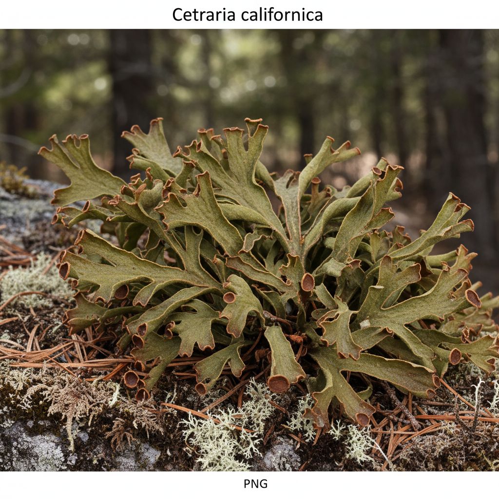 Cetraria californica, um líquen com uma longa história de uso tradicional na medicina, oferece uma variedade de benefícios para a saúde, incluindo propriedades antioxidantes e imunoestimulantes que contribuem para a proteção das células contra danos causados pelos radicais livres e reforçam as defesas naturais do organismo, ajudando a prevenir doenças e melhorar a saúde geral, além de auxiliar na saúde respiratória devido às suas propriedades expectorantes e emolientes, aliviando sintomas de tosse e congestão.
