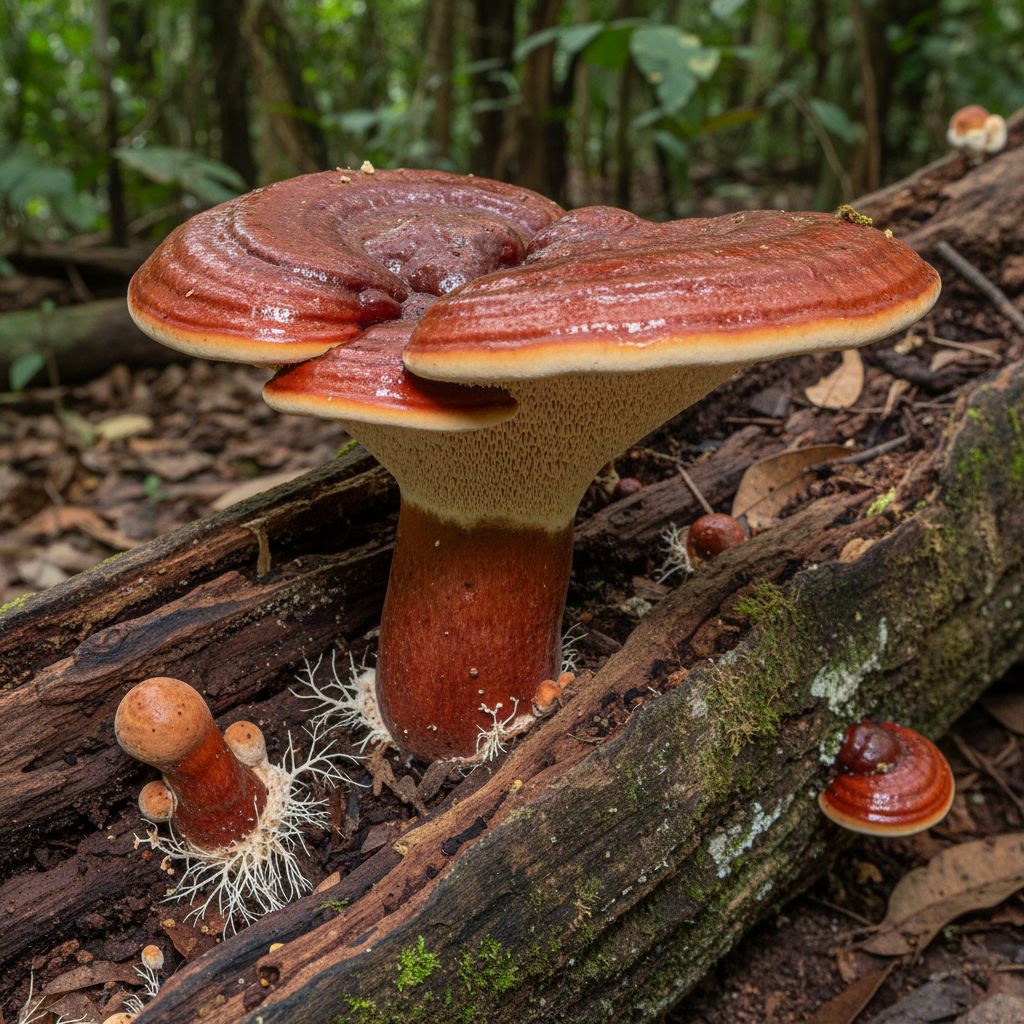 Ganoderma petchii, um cogumelo medicinal fascinante, oferece uma ampla gama de benefícios à saúde humana, incluindo suporte ao sistema imunológico, propriedades antioxidantes que combatem os radicais livres, e potenciais efeitos benéficos na prevenção de doenças crônicas, graças à sua riqueza em polissacarídeos, triterpenos e outros compostos bioativos. Estes componentes contribuem para a promoção do bem-estar geral, melhorando a qualidade de vida e a longevidade.